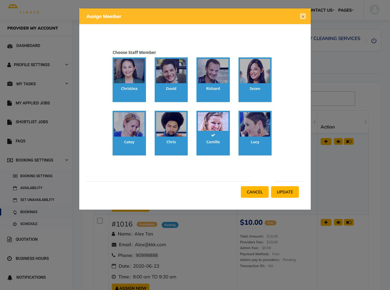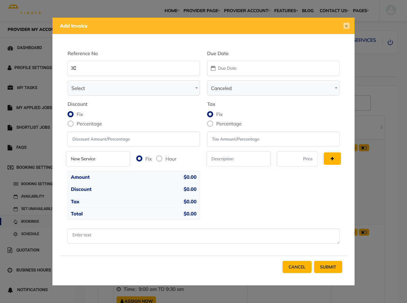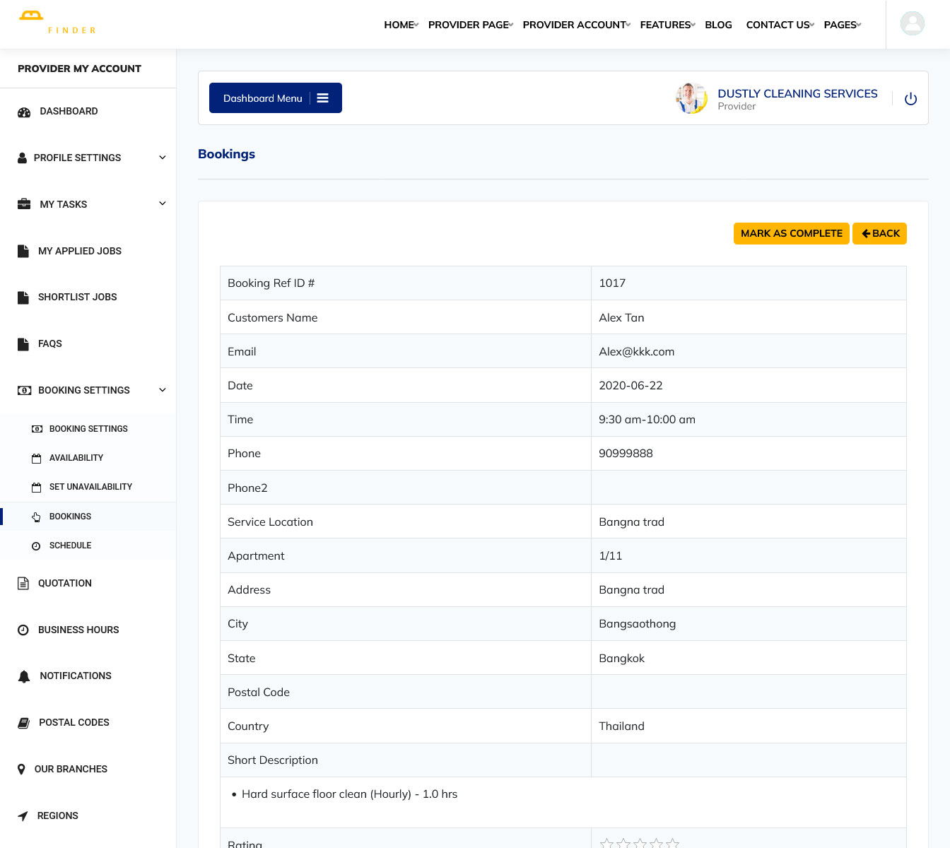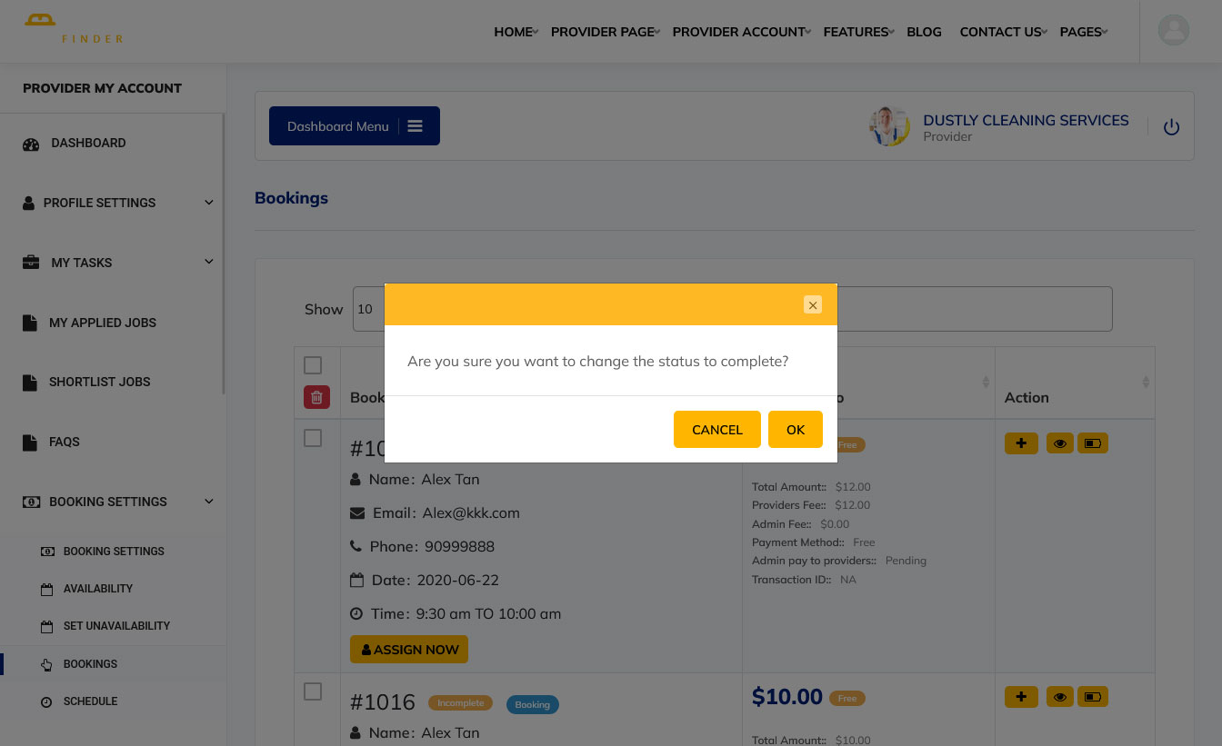 Service Finder WordPress Theme provides easy to manage bookings section as seen below: